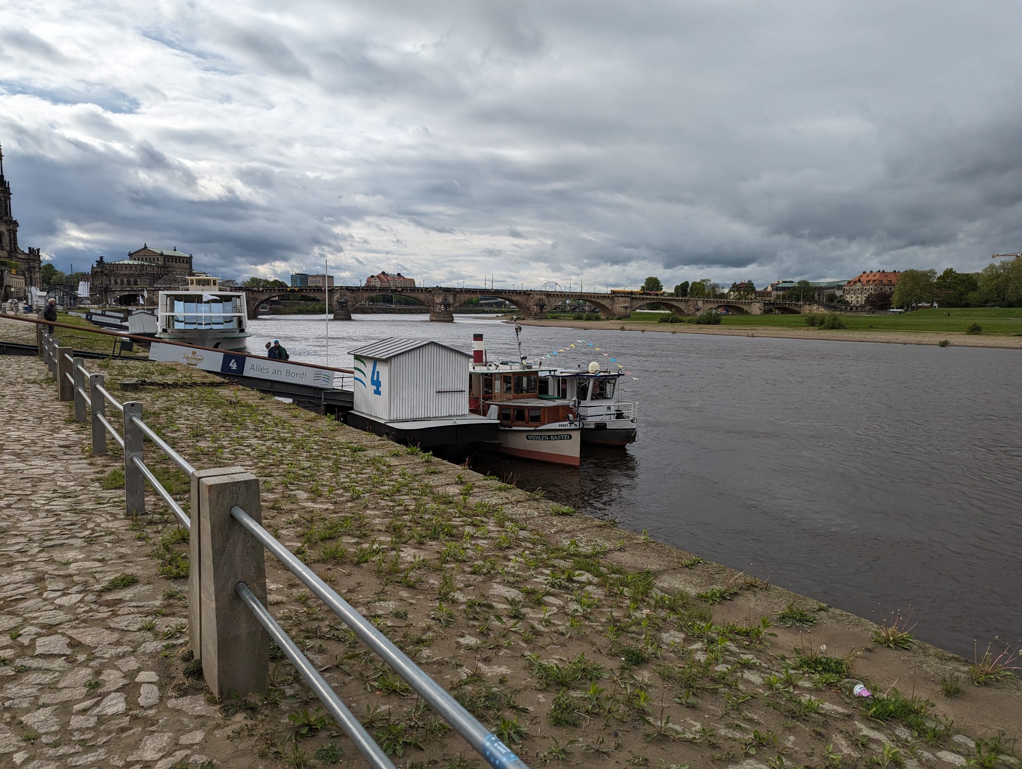 Glücklicherweise waren unsere Bedenken umsonst. Wir kommen problemlos in Dresden an und machen zwischen den imposanten Dampfschiffen der Weißen Flotte am Terrassenufer fest. Es bietet einen wunderbaren Anblick.