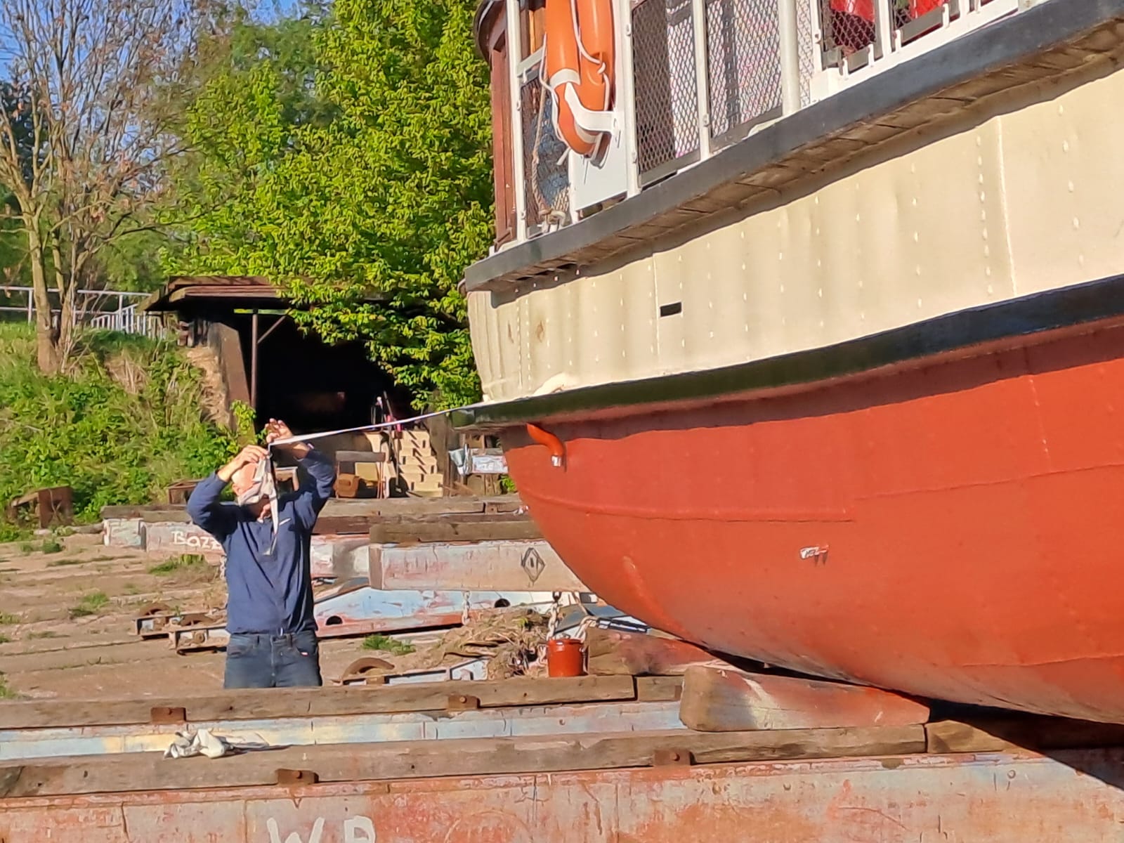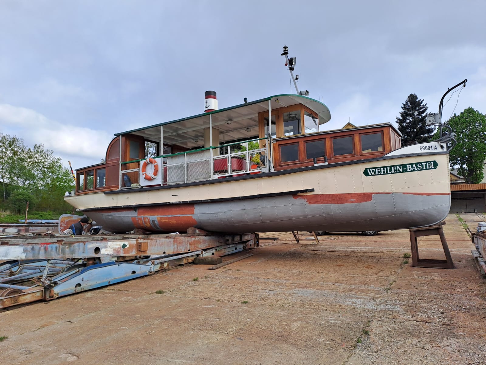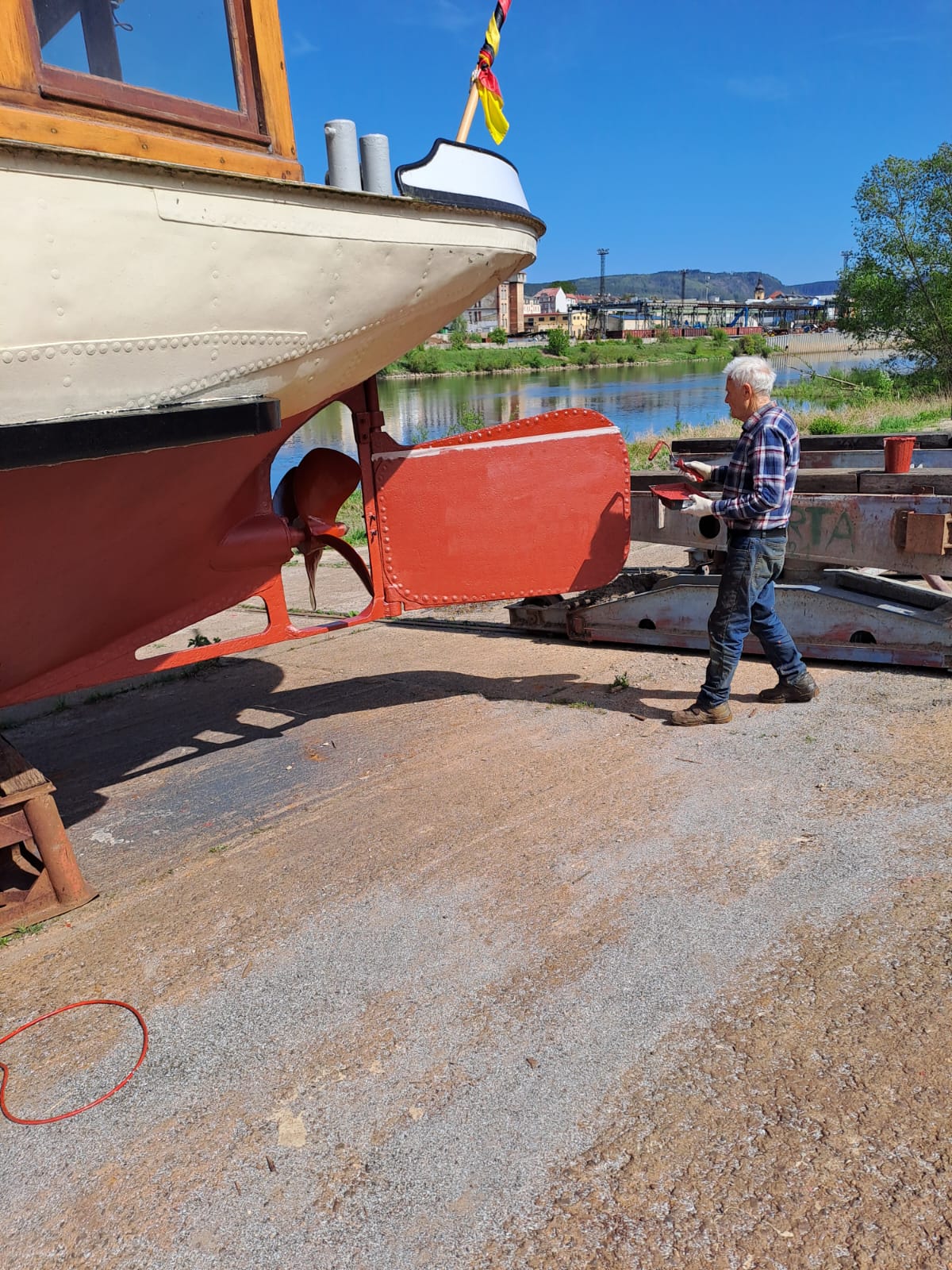 Die gesamten Arbeiten erstreckten sich über eine ganze Woche, sodass wir, wie geplant, pünktlich zum 1. Mai unseren Basti mit neuem Unterwasserschiff zur alljährlichen Dampferparade in Dresden präsentieren konnten.