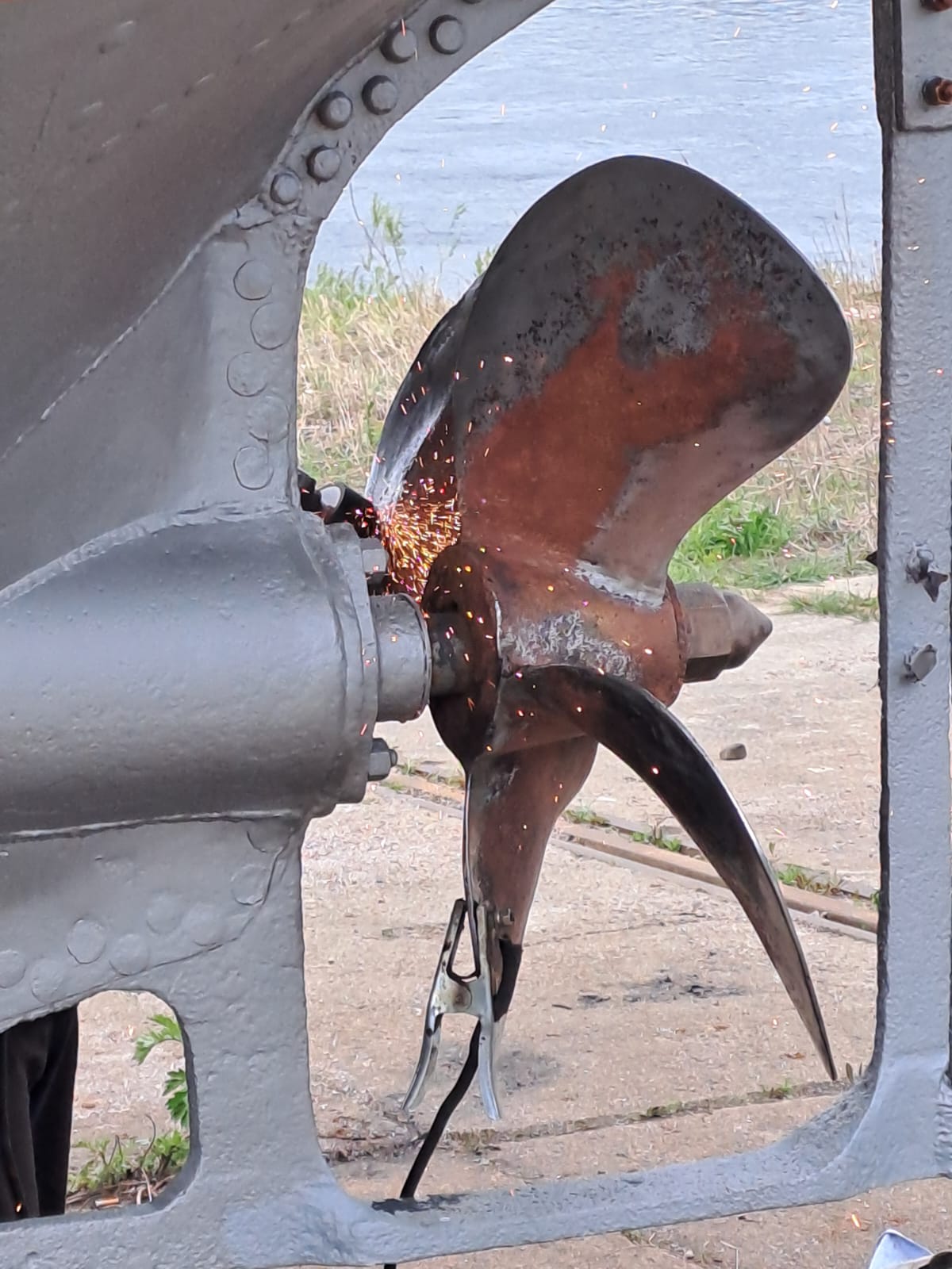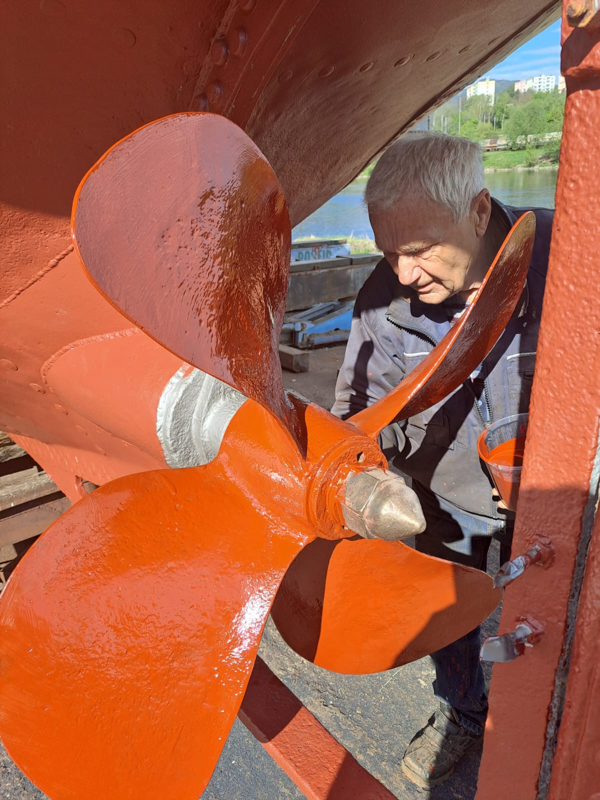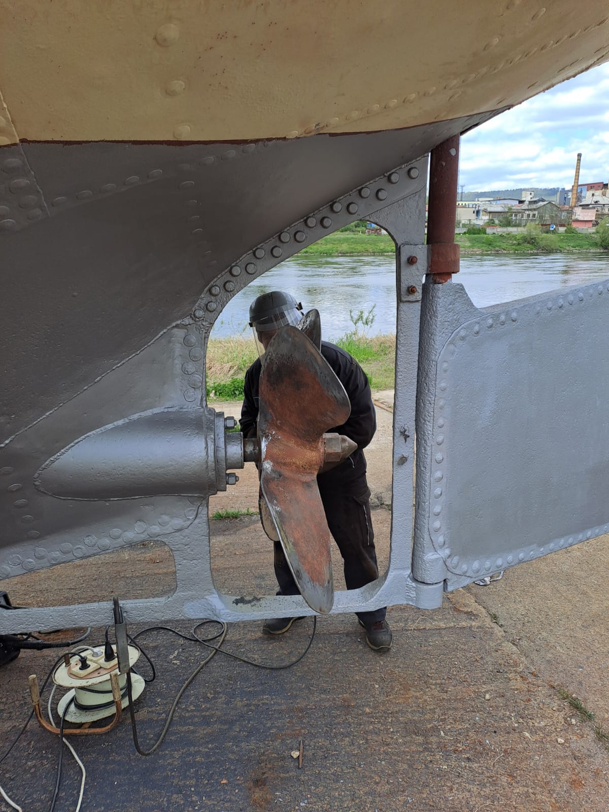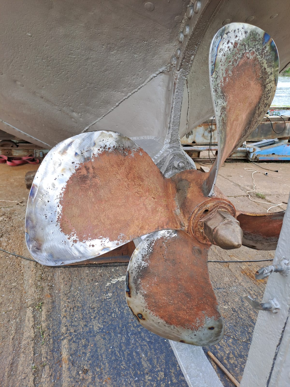 Nach einer gründlichen Inspektion wurde ein Plan erstellt, was alles zu tun ist, und dann begannen die Reparaturen und Ausbesserungen. Unter anderem wurde die Schiffsschraube überholt und die Rumpfdurchlässe neu verschweißt. Danach wurde ein neuer Unterwasseranstrich aufgetragen, um das Boot für die nächsten Jahre bis zur nächsten Inspektion gut zu schützen.